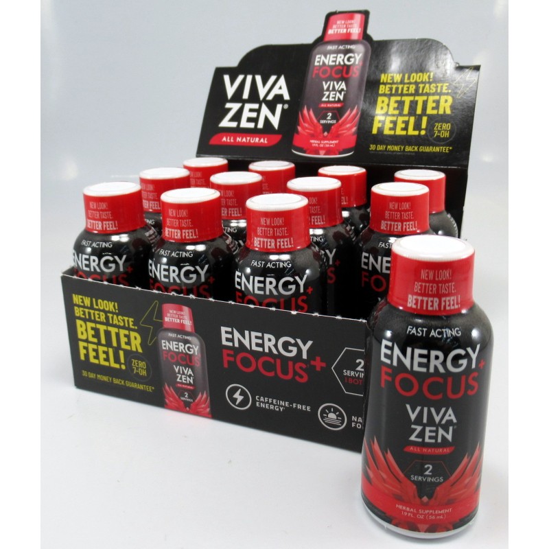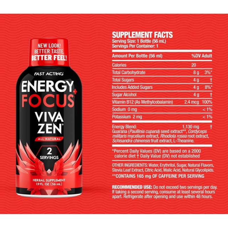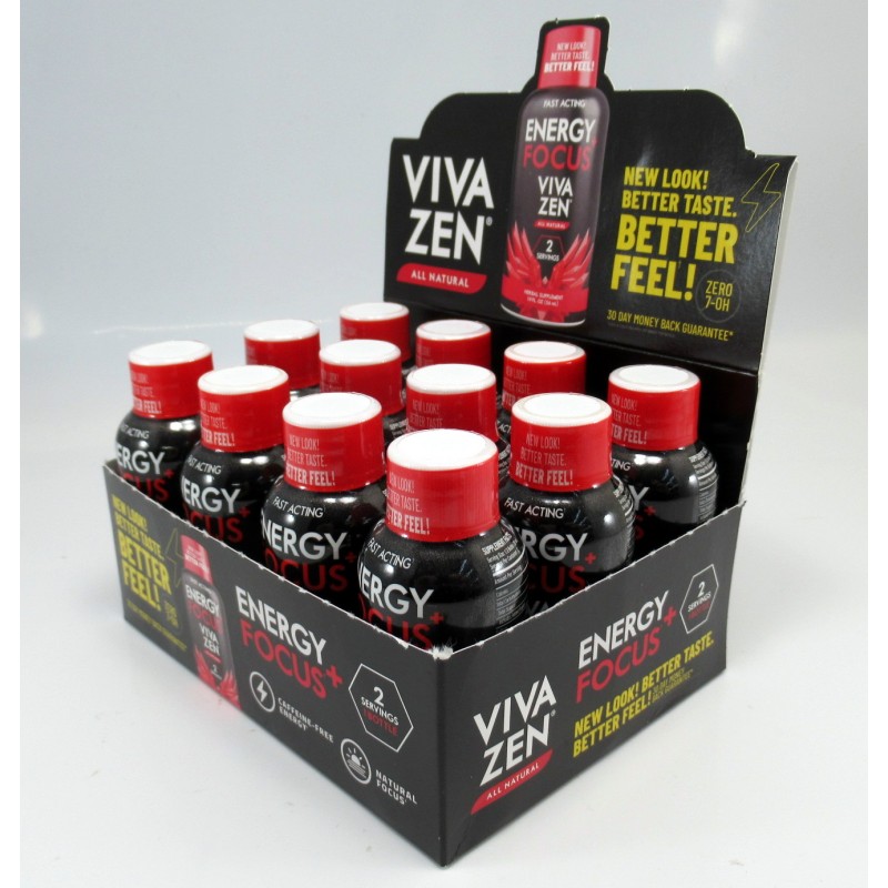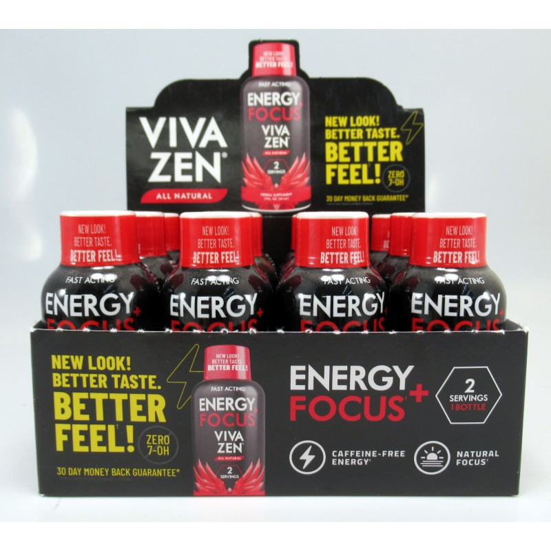 Vivazen® Energy + Focus* shot delivers increased energy and natural focus without caffeine or the jitters associated with caffeine. Whether you’re powering through the afternoon slump, preparing for a long haul or a double shift, our expertly crafted botanical blend fuels your mind and body.*
