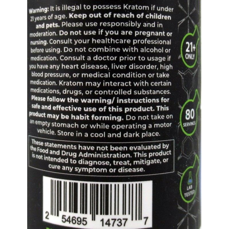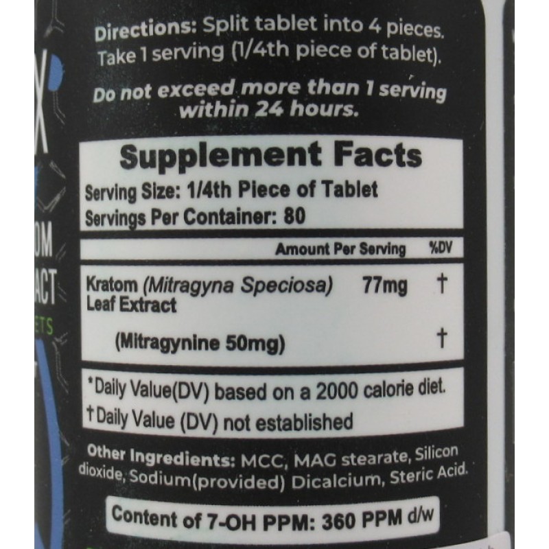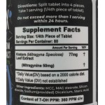 Ingredients: Mitragyna Speciosa (Kratom) Leaf Extract 77mg (Metragynine 50mg)